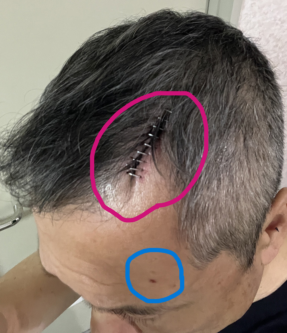 ※赤丸 : 手術時にホッチキスで固定された箇所。針の数は実際に術中『9コ』と聞こえた通り。 ※青丸 : 頭部固定フレームによるキズ。術後、最大の痛みの原因となった。 若干患部が腫れているが、周りからキズは見えにくいそうだ。ジストニア手術の痛みは、全くと言っていいほど感じない。おでこのキズも日に日に落ち着いてきている。 とはいえ、やはり今日も一番気になっていることは……ピアノだ。 今日も昨日と変わらず、指がいうことをきいてくれないので、今日から練習の作戦を変えて、暗譜でどんどん新曲を頭に放り込んでいくことにした。 ともかく焦らずに—— 自分にできることを、積み重ねていこう。 |