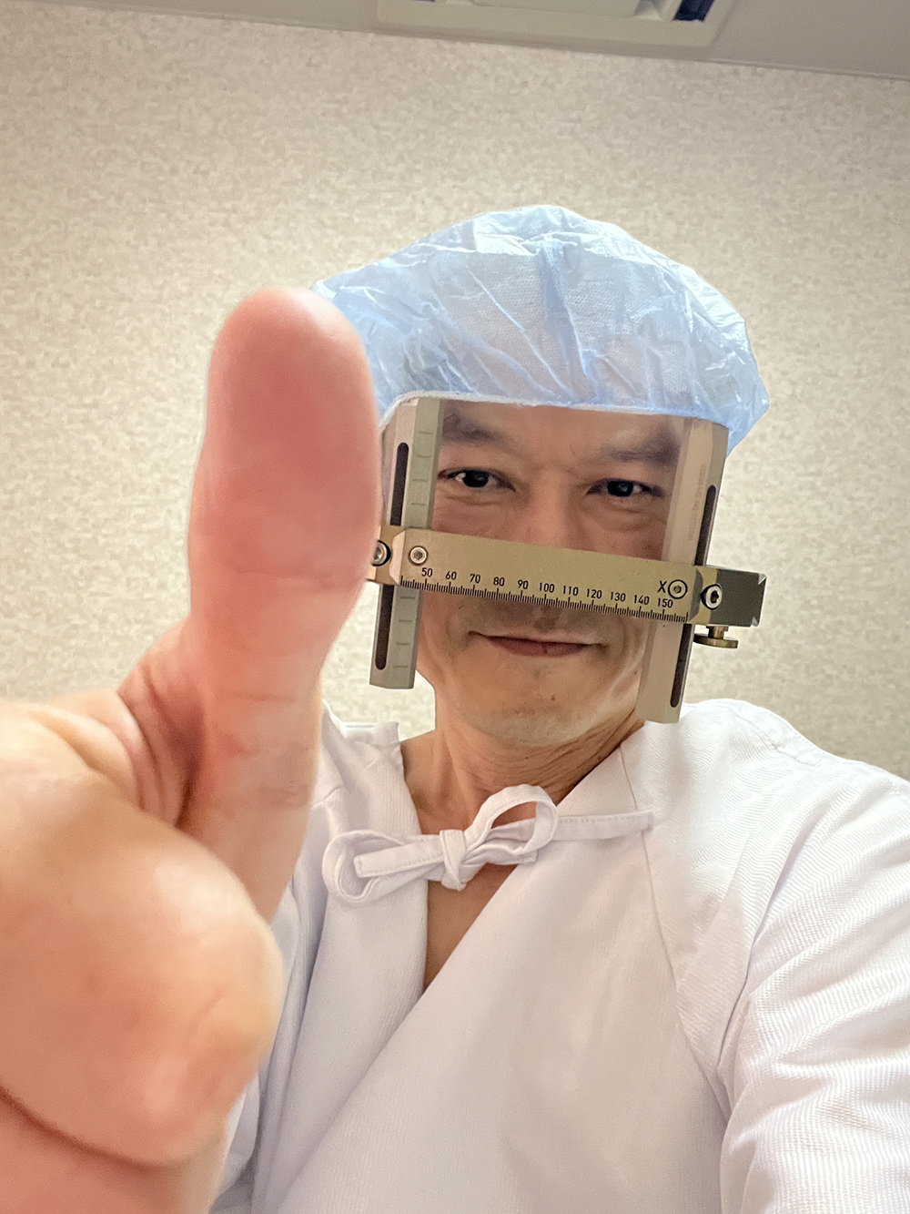 ・10 月1日 ~入院2日目 機能的脳定位手術 昨晩は“良い夢”どころか、なかなか寝付けなかった。 日ごろから真面目に行っている“晩酌”が出来なかったせいか、はたまた手術に対する期待と希望で 興奮して寝つけなかったのかはわからないが、時計を見るとまだ午前4時。そこから頑張って目を閉じてはみたが、まぶただけつぶっていても、その奥の目玉は生き生きと冴えている。 えいくそ!と思い、起き上がって朝支度を始めた。洗顔や歯磨きのほかに、手術前に洗髪もしておかなければならなかった。そうこうしているうちに、朝の検温や血圧、 血糖測定の時間になり点滴も8時から始まった。ジストニアの手術を受ける人は、術中に頭が1ミリも動かないように、手術台とガッツリ固定するため、頭に金属のフレームを装着 しなければならない。 その処置予定は9時だったが、8時半にはお呼びがかかった。 |